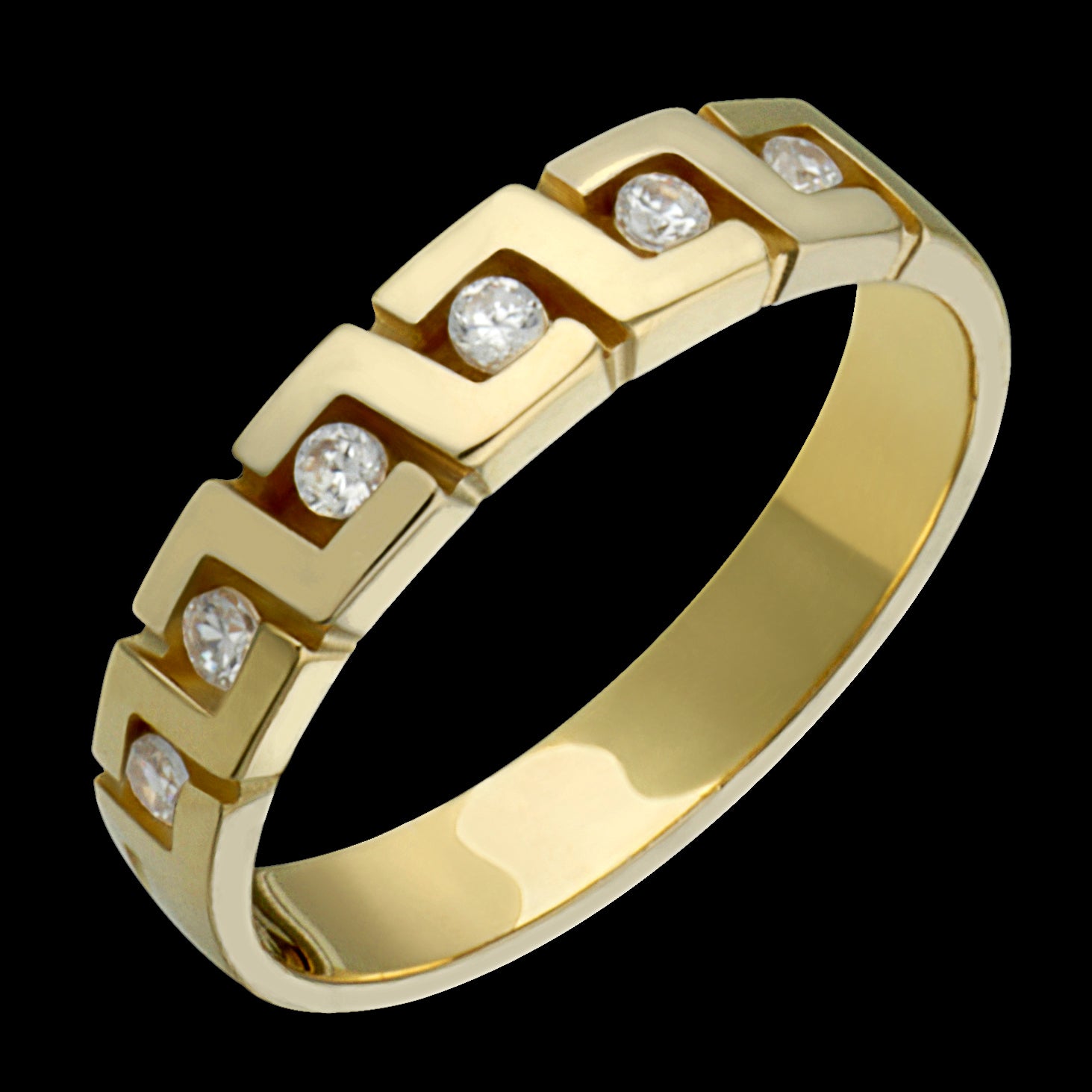 À couper le souffle et élégante, cette bague présente une seule rangée de diamants éblouissants sertis dans un design en or jaune. Un look époustouflant.