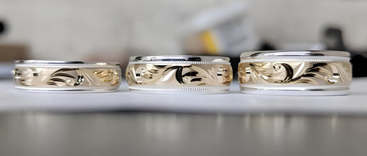 Elegance of two-tone wedding bands crafted from luxurious gold and durable titanium. Discover the perfect union of style and strength.